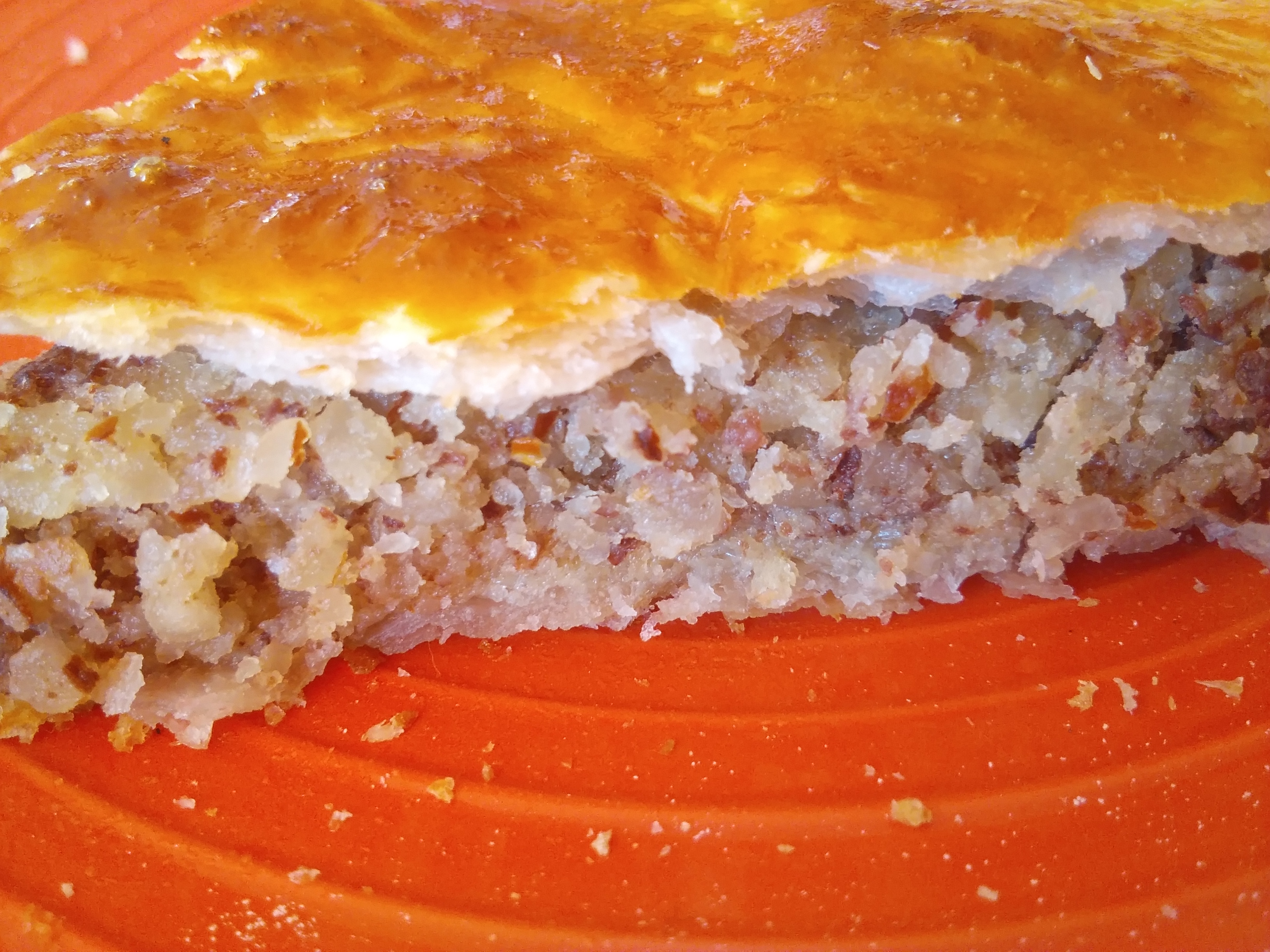 Déposer le mélange sur la pâte, recouvrir avec la deuxième pâte feuilletée, et souder les bords.