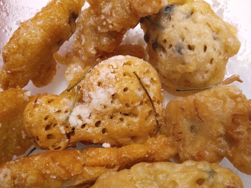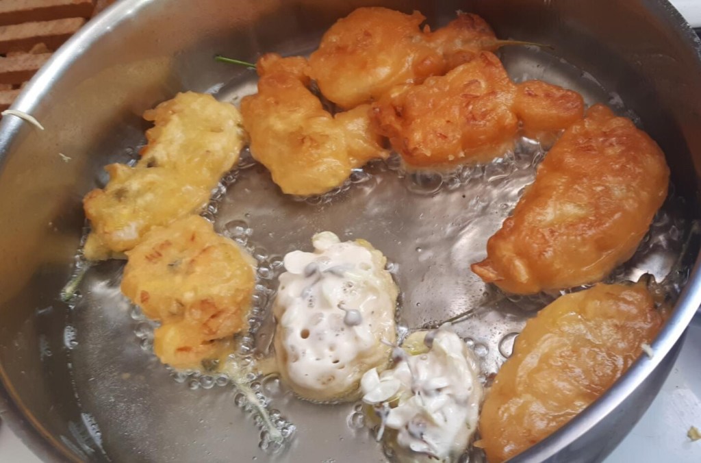 Si il n’y a plus de fleurs mais qu’il reste de la pâte, on peut faire cuire des petits tas de pâte nature pour la finir.