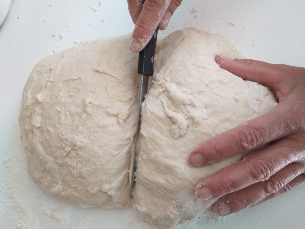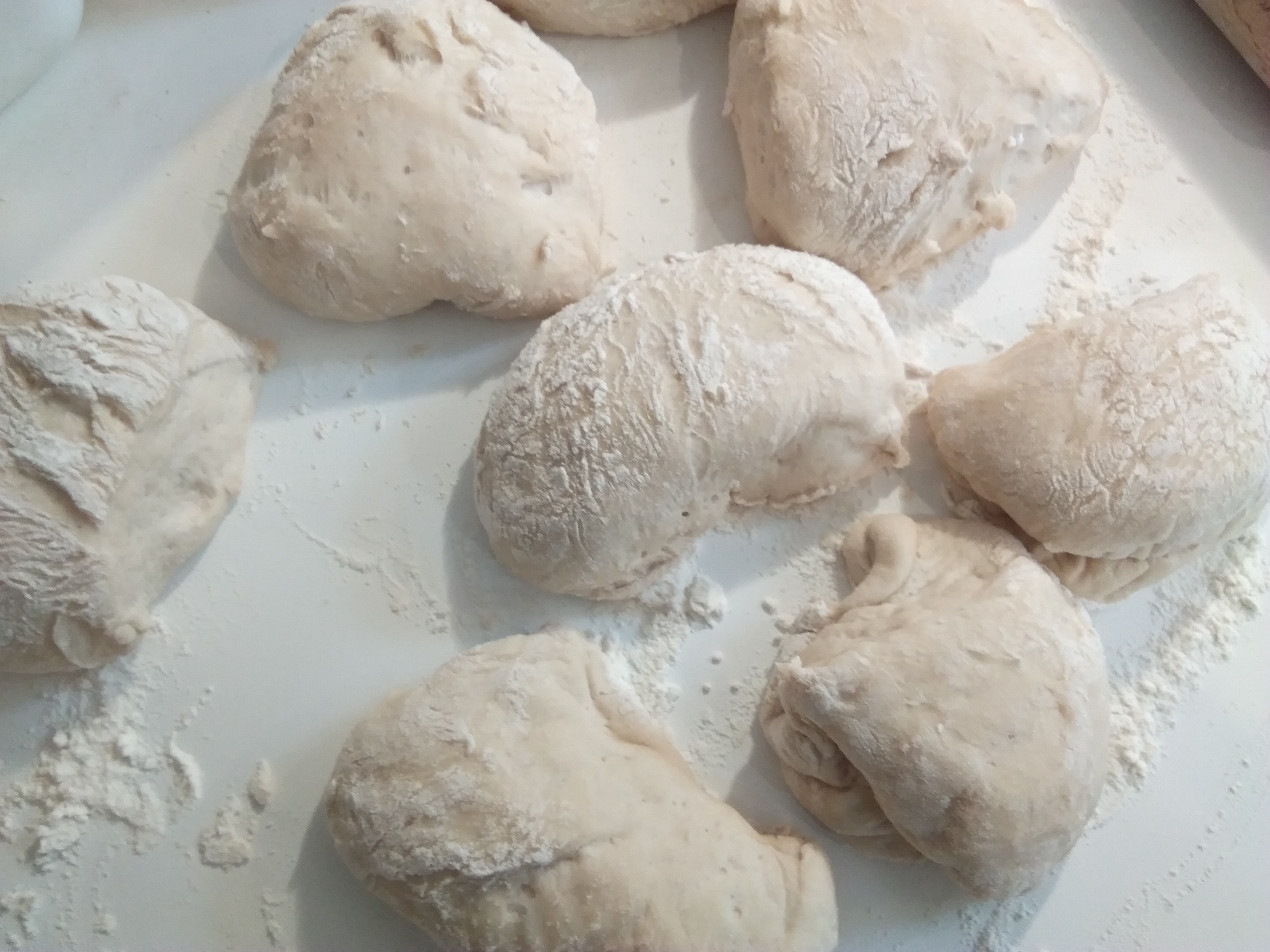 A la fin du programme, fariner ses mains et sortir la pâte de la cuve. La diviser en 12 petites boules. Laisser reposer au moins 1h.