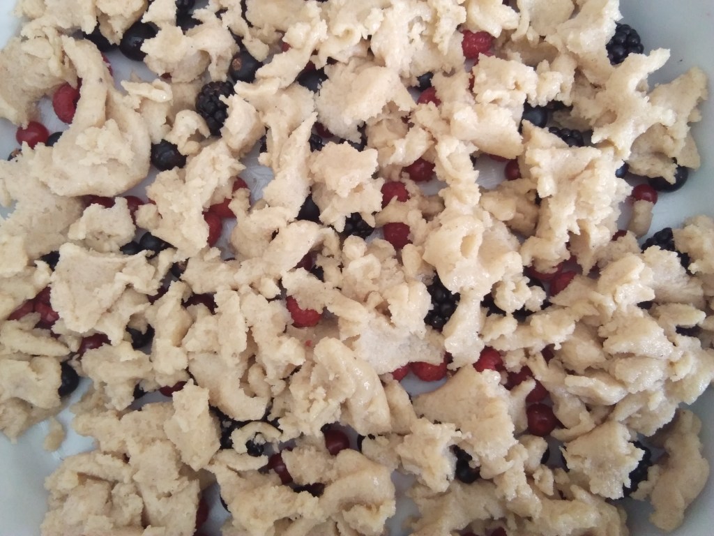 Evidemment, j’ai fait des crumbles aux fruits rouges, mais ça marche aussi avec d’autres fruits…
