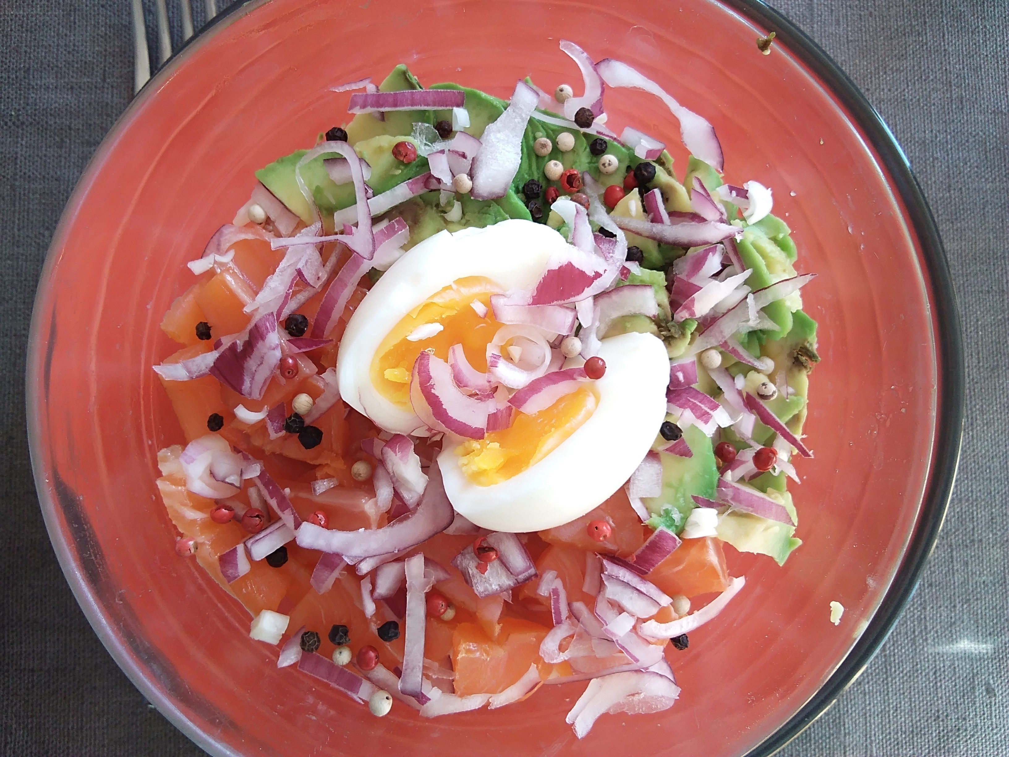 Une base pour faire une « assiette fraîcheur de saison », vite fait, que l’on peut déguster telle quelle ou sur quelques feuilles de salade verte glissées dessous… Avec un bon dessert, elle fera office d’entrée et de plat principal.