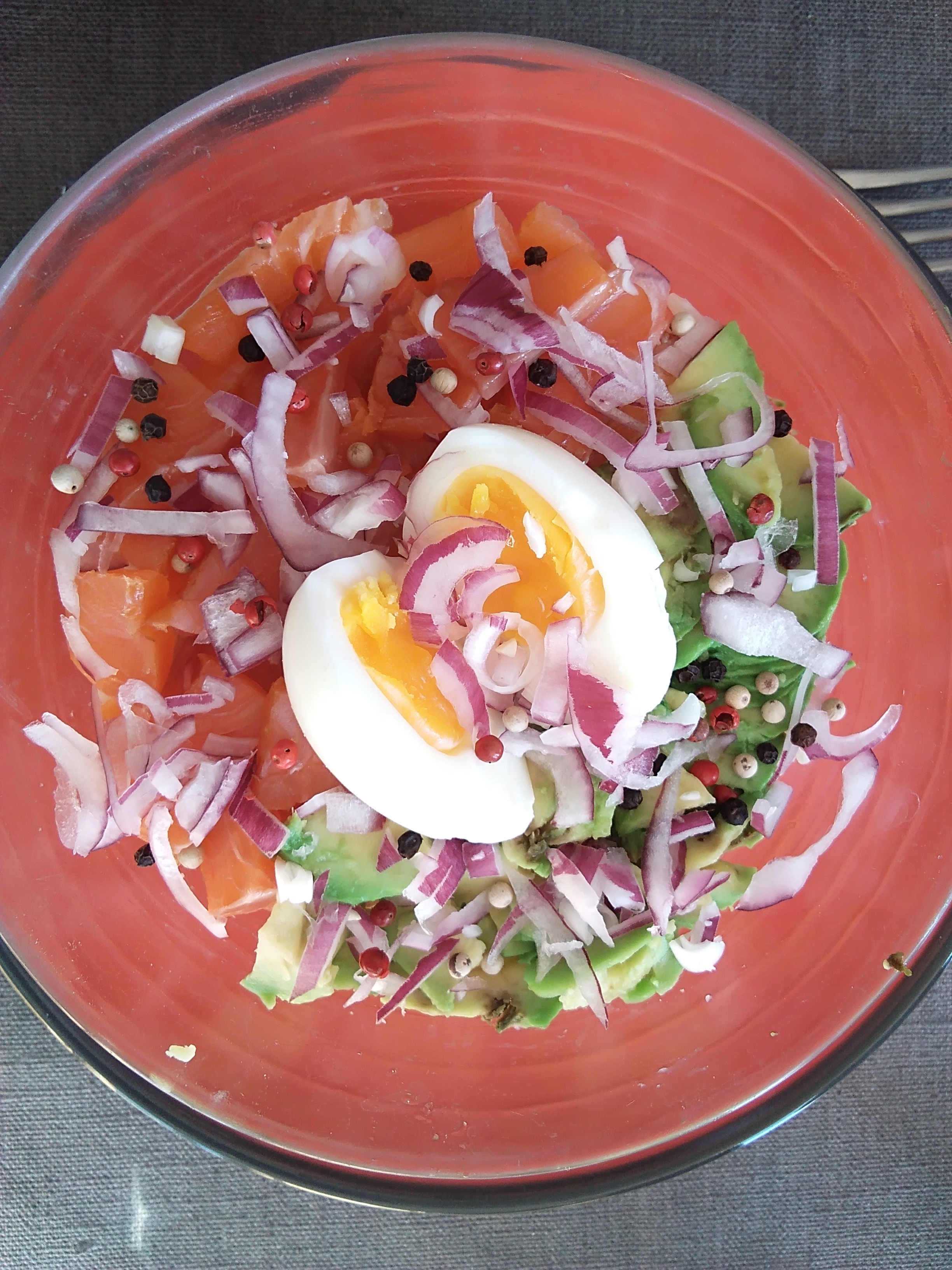 Une base pour faire une « assiette fraîcheur de saison », vite fait, que l’on peut déguster telle quelle ou sur quelques feuilles de salade verte glissées dessous… Avec un bon dessert, elle fera office d’entrée et de plat principal.