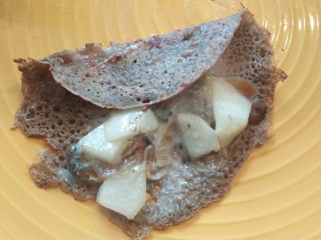 Aux pommes et oignons caramélisés et crème de tournesol :