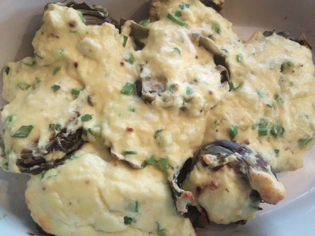 Recouvrir les artichauts avec le mélange et mettre au four une vingtaine de minutes.