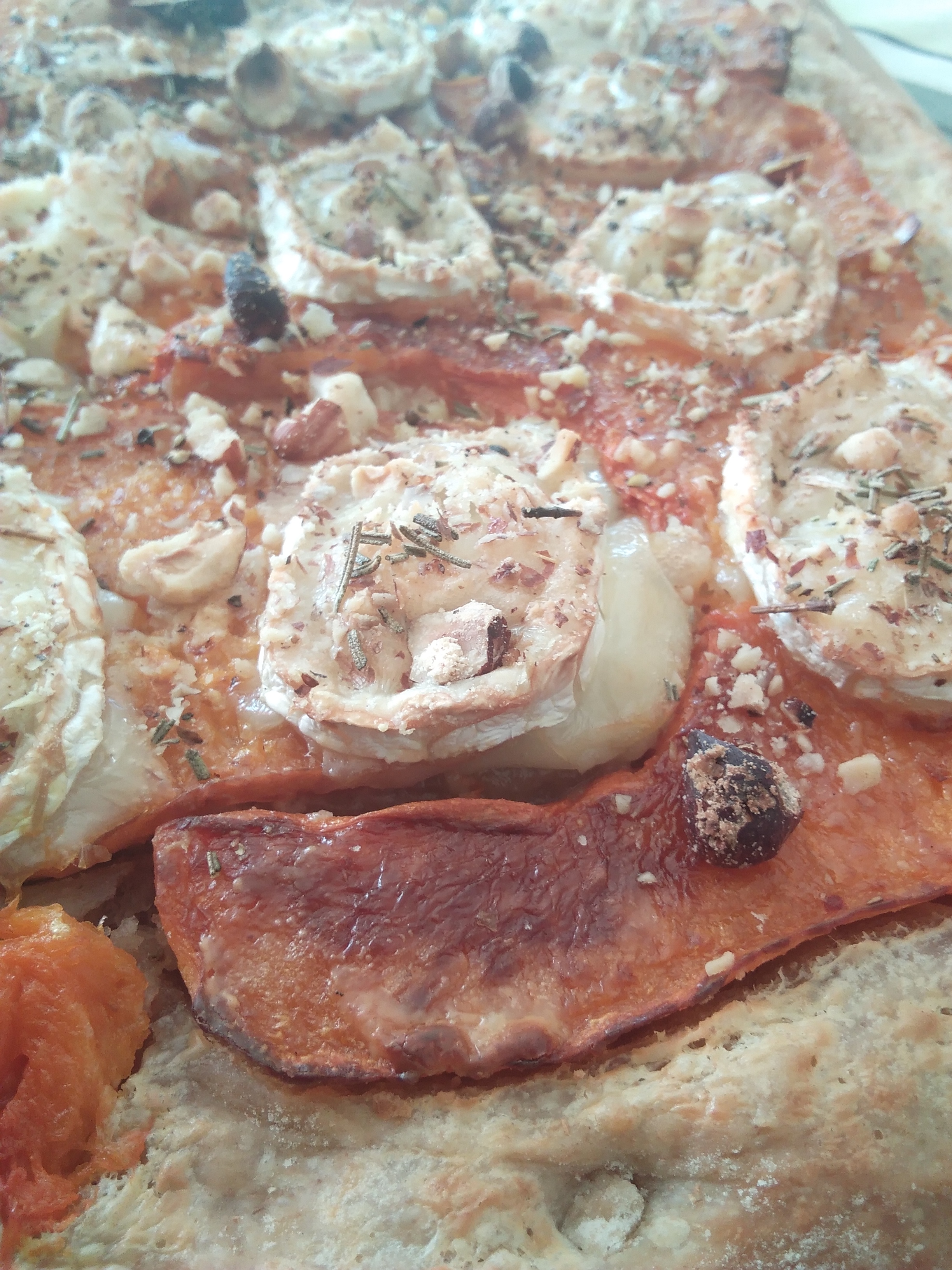 Une pizza originale à la garniture tout à fait automnale, que m’a confiée Mélanie Castel, ma productrice de courges ( et de patates )…