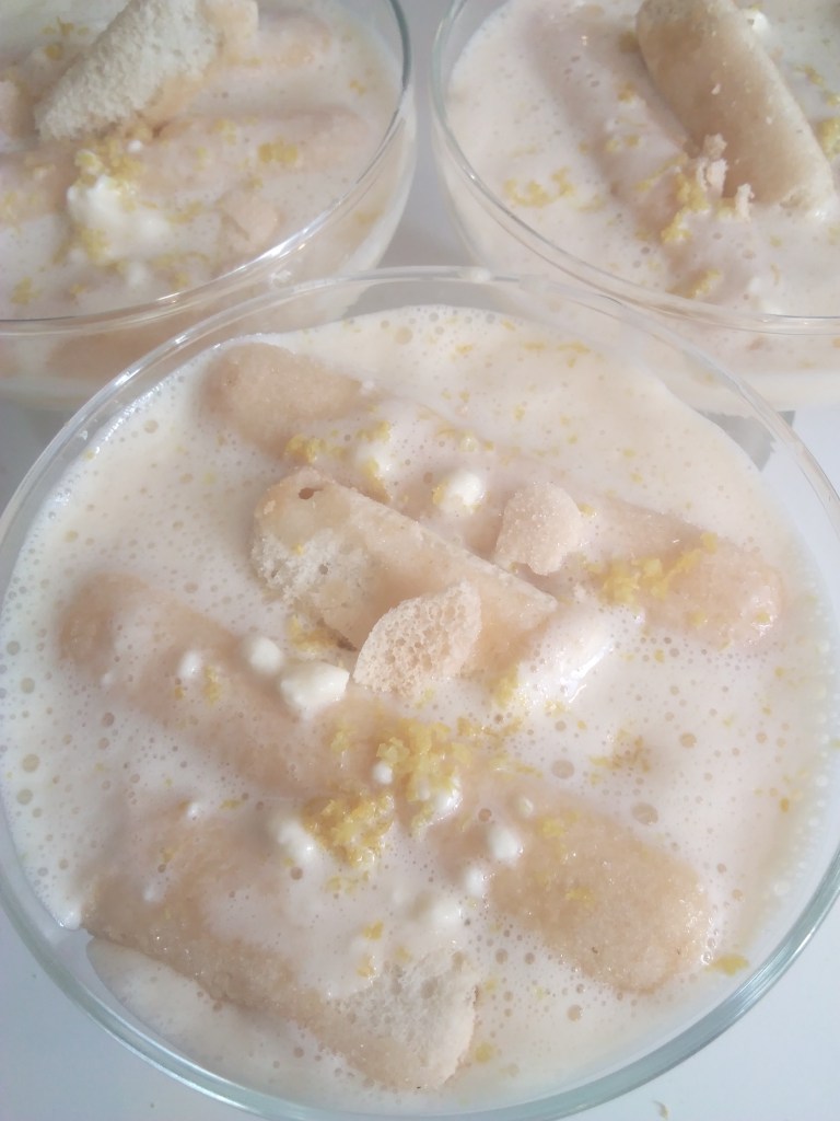 Tremper brièvement les boudoirs dans ce sirop et déposer au fond du plat ou des verrines. Recouvrir de crème au mascarpone et saupoudrer de zeste de citron râpé. Recommencer avec une couche de biscuits trempés et terminer avec la couche de crème au mascarpone. Saupoudrer de zeste de citron râpé. Couvrir et laisser au frais pendant au moins 6h.