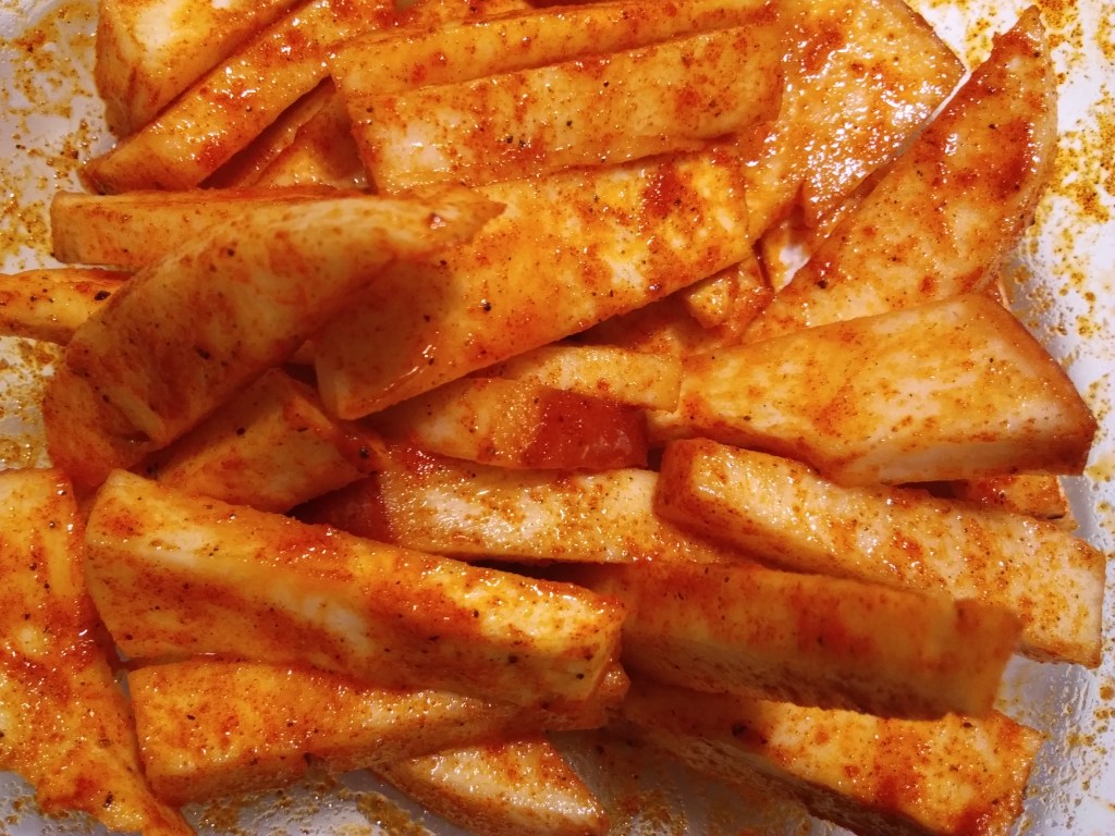 Si chez vous -comme chez moi- , le navet est un légume proscrit , cette recette de frites avec leur sauce sucrée est à tenter ! On peut même les mélanger à des frites de pommes de terre ou de patates douces pour négocier la démarche…
