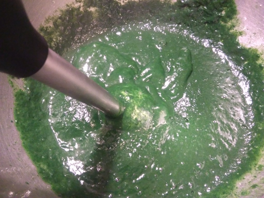 Dans une grande casserole, mettre la pomme de terre à cuire dans de l’eau pendant à peu prés 15 min, puis ajouter les épinards pour 5 min.