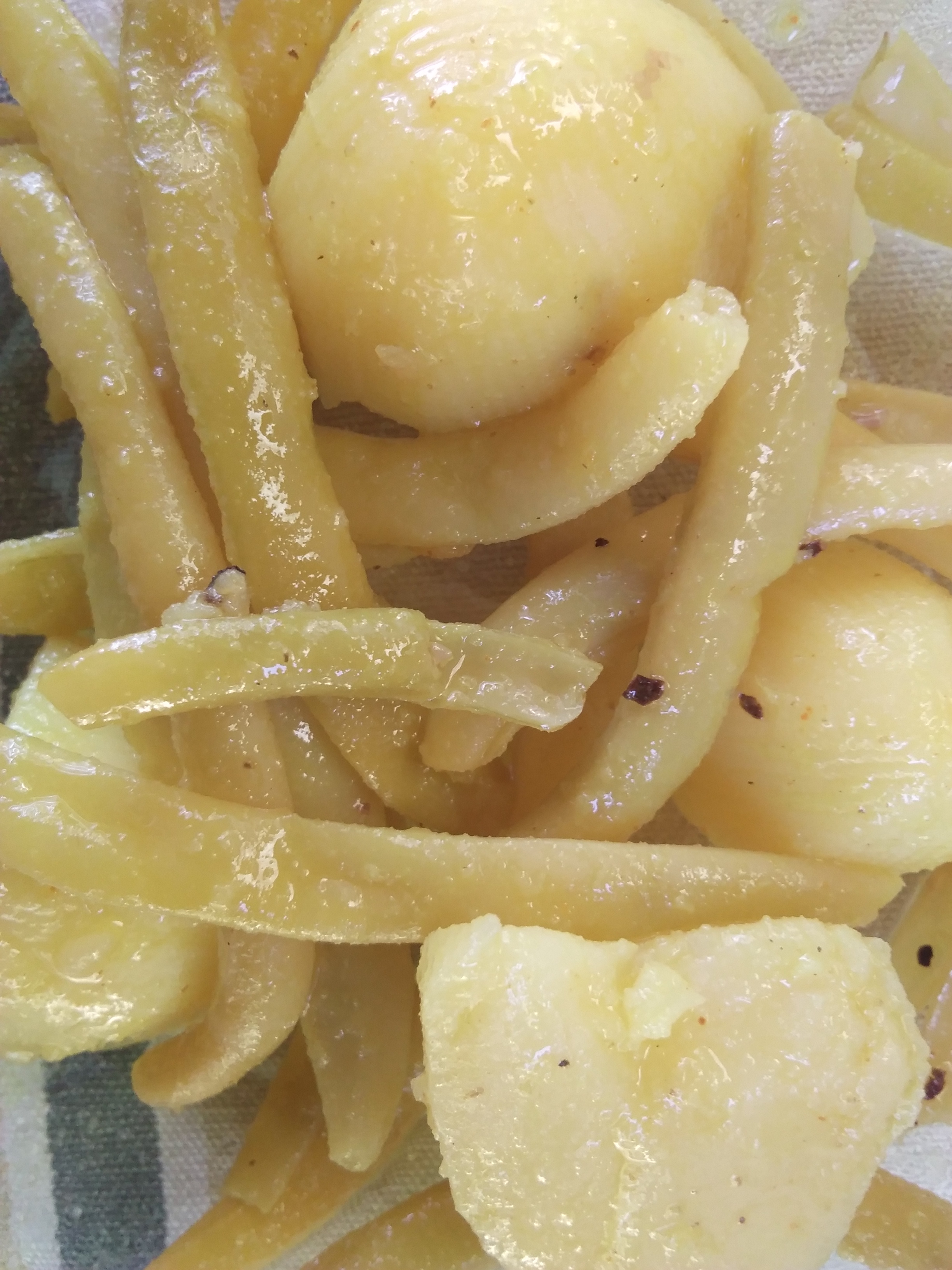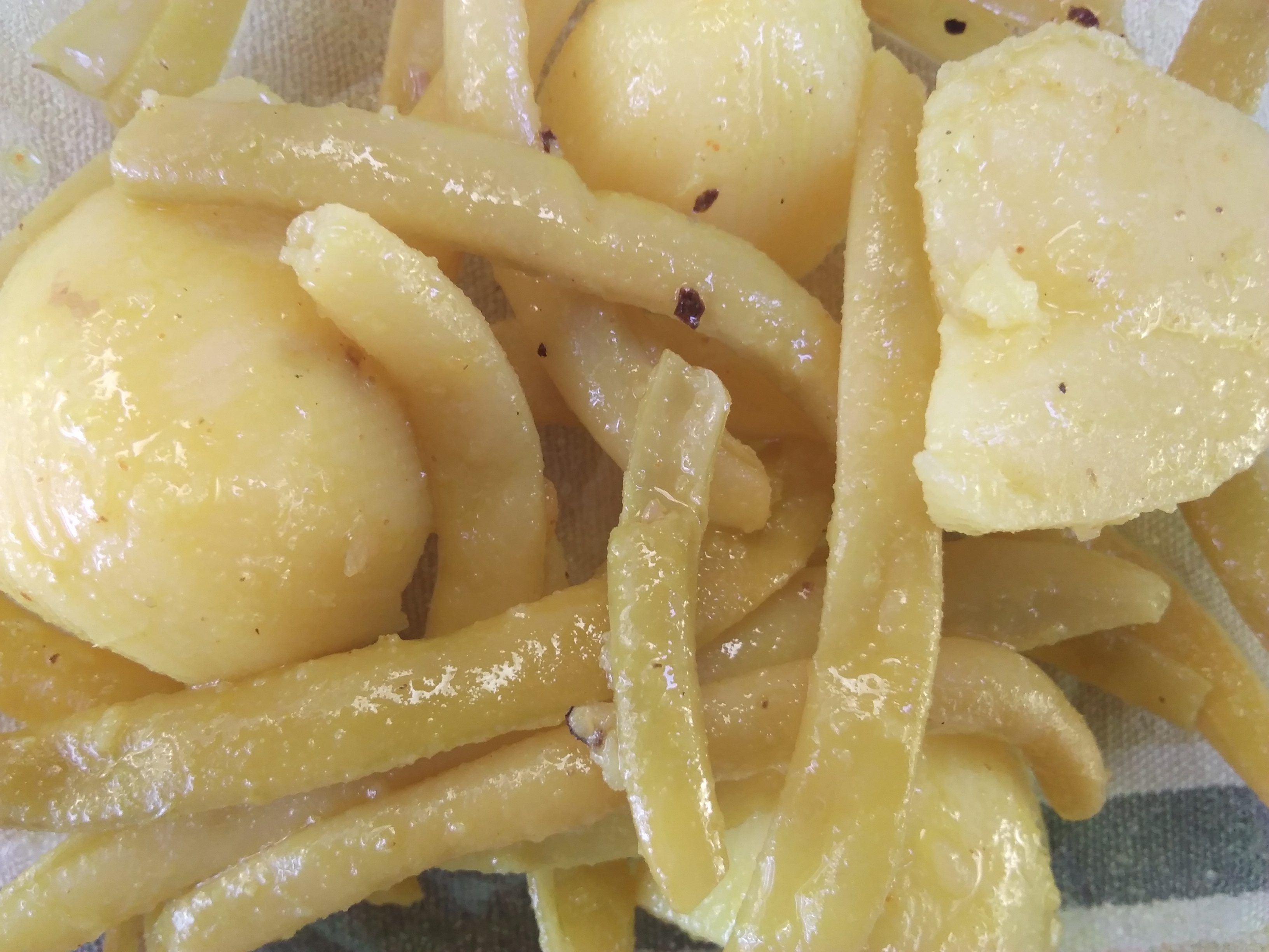Dans un saladier, mettre tout les ingrédients de l’assaisonnement et bien mélanger, juste avant de rajouter patates et haricots.